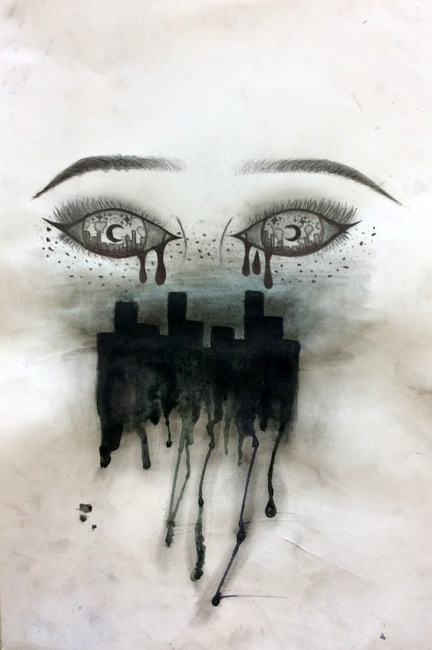 30 x 35cm, Brusho, pencil, colour pencil, watercolour