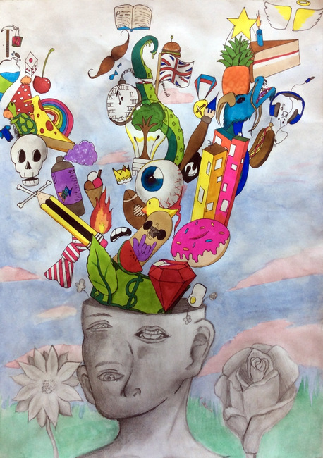 30 x 42cm, Brusho, pencil, colour pencil, watercolour