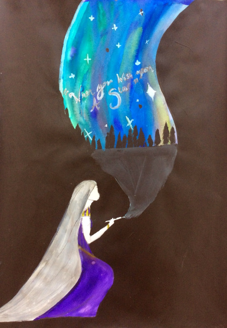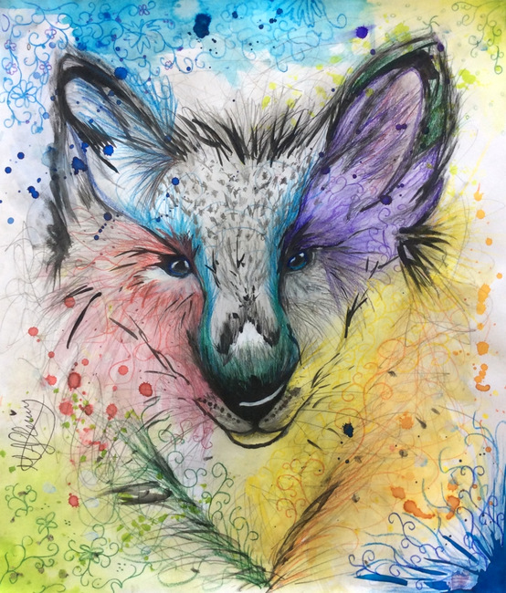 30 x 42cm, Brusho, pencil, acrylic, white pen